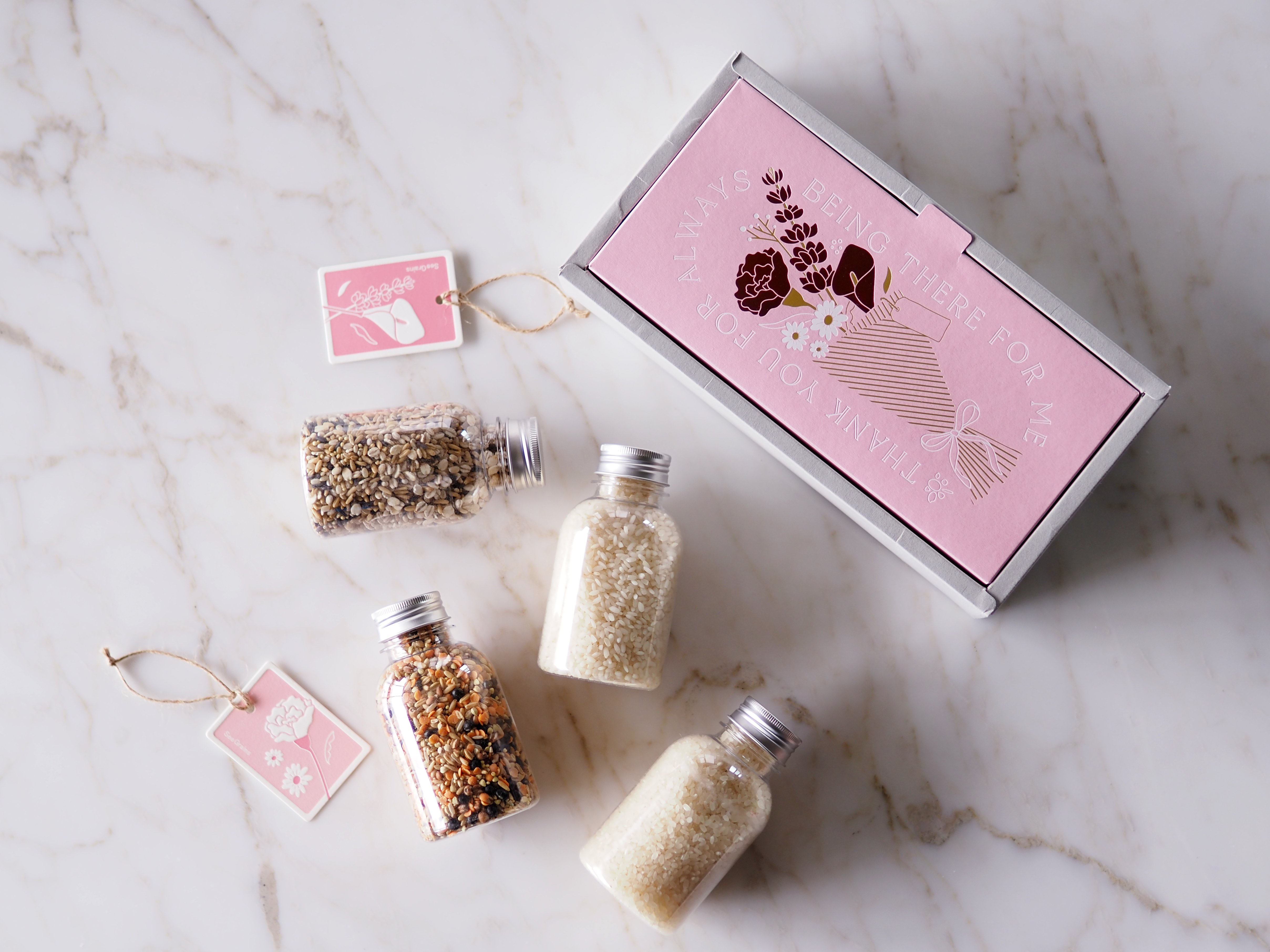 內容物:經典配方250g、美人配方250g、台灣越光米250g、台東人鹿野米250g