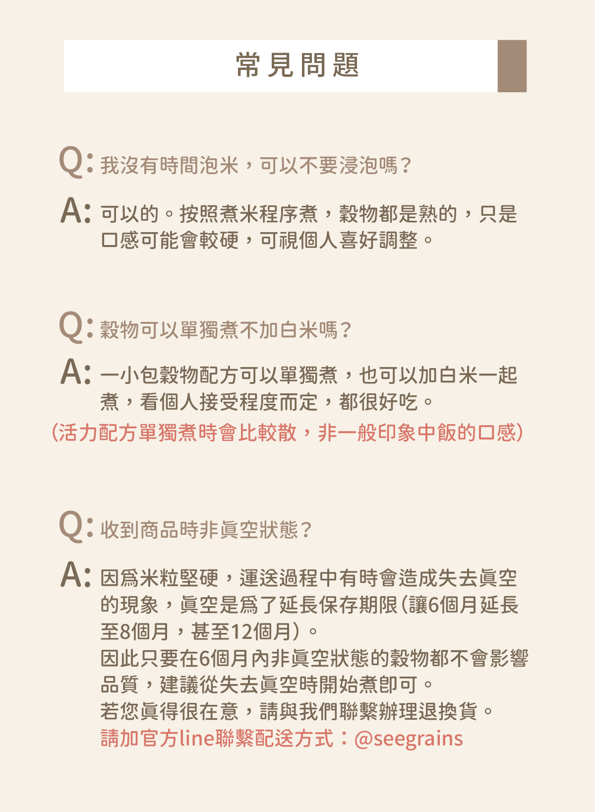 1. 本產品為未經加工之天然穀物,如有穀物碎粒為正常現象。