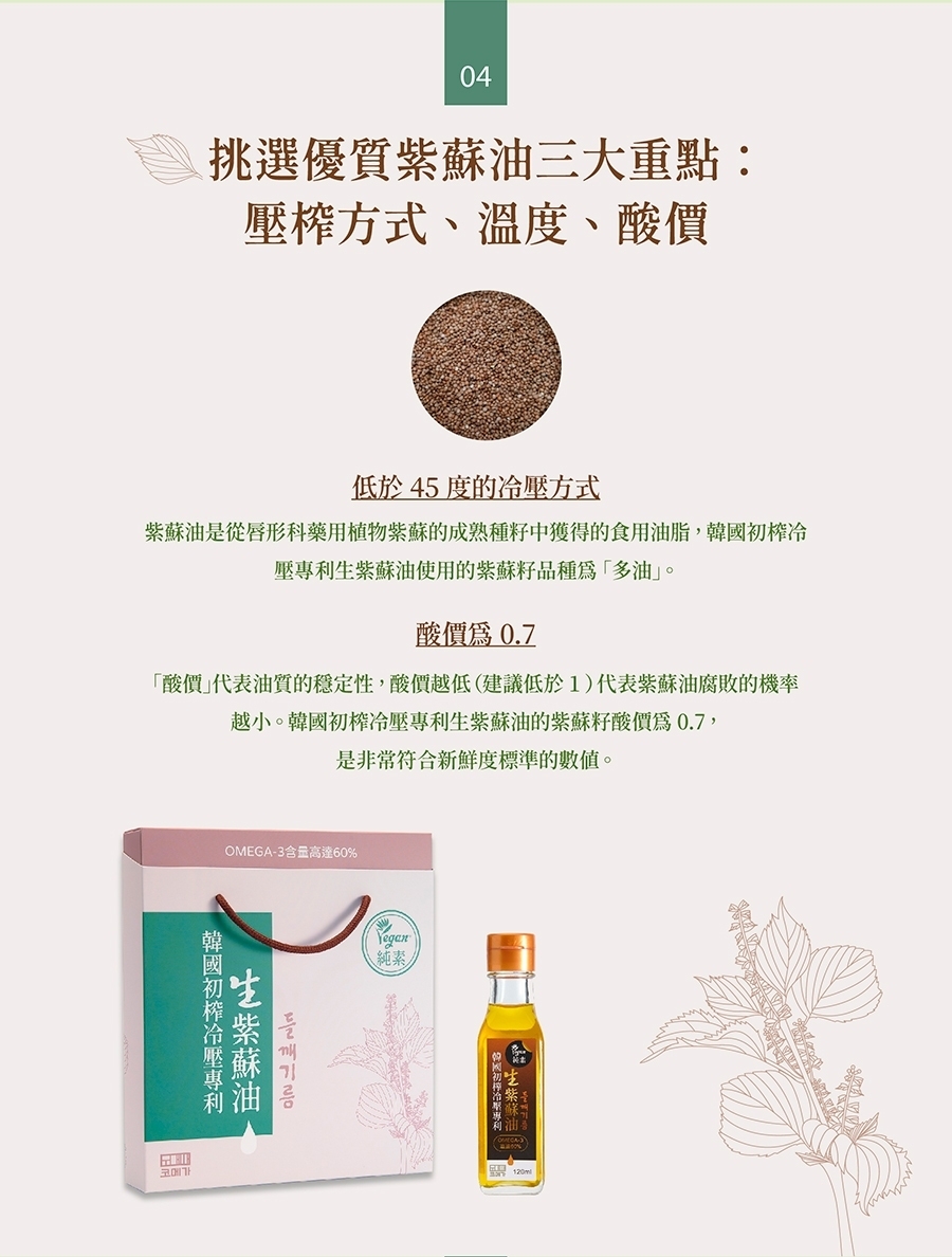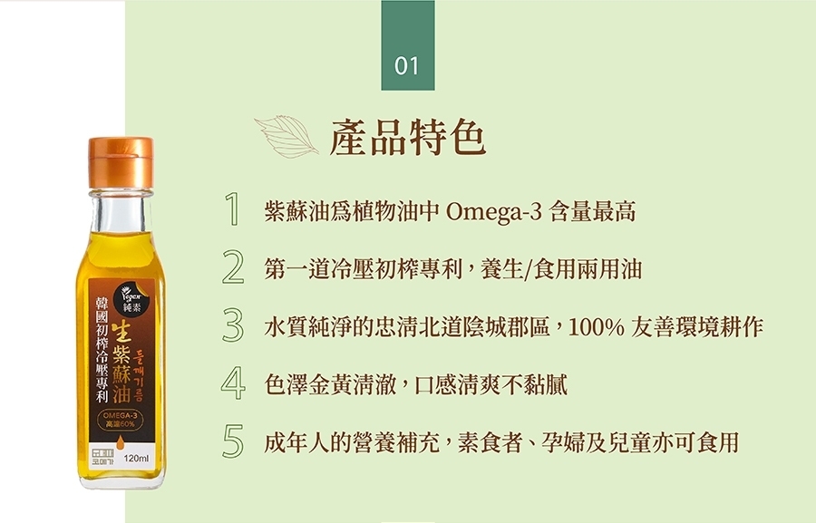 ★ 第一道冷壓初榨專利,養生/食用兩用油