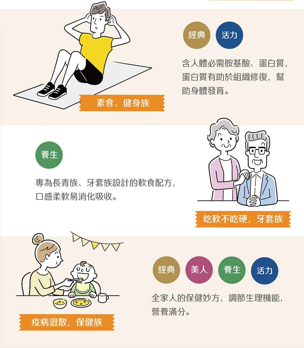 有長壽養生智慧的長輩們,最適合這款配方。它是最簡單、最精簡的營養。